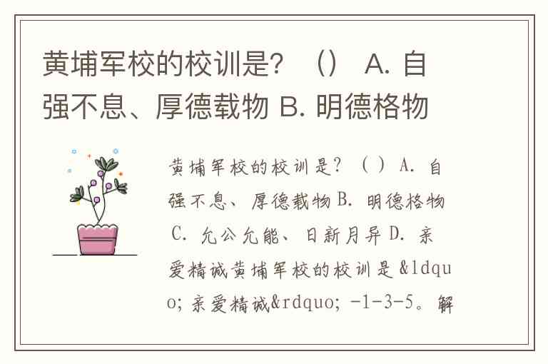 黄埔军校的校训是?() A. 自强不息、厚德载物 B. 明德格物 C. 允公允能、日新月异 D. 亲爱精诚