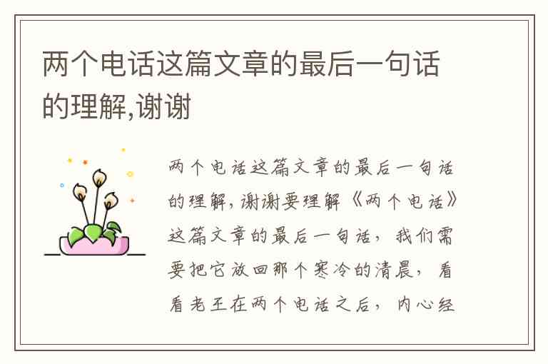 要理解《两个电话》这篇文章的最后一句话,我们需要把它放回那个寒冷的清晨,看看老王在两个电话之后,内心经历怎样的波澜。