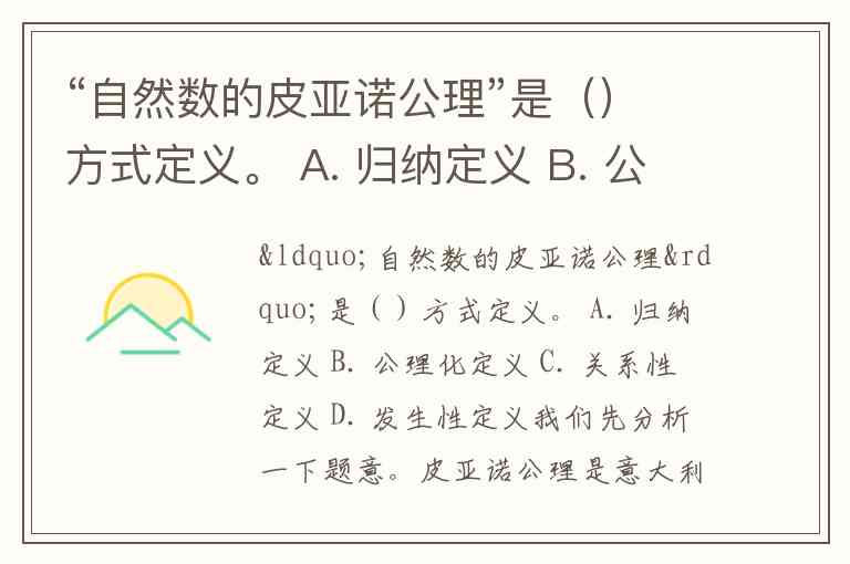 A. 归纳定义:指递归定义,如“1 是自然数;n 是自然数则 n+1 是自然数”——这和皮亚诺公理中的归纳法有关,但皮亚诺公理是对自然数系统的公理化刻画,不是归纳定义这个“定义方法”。