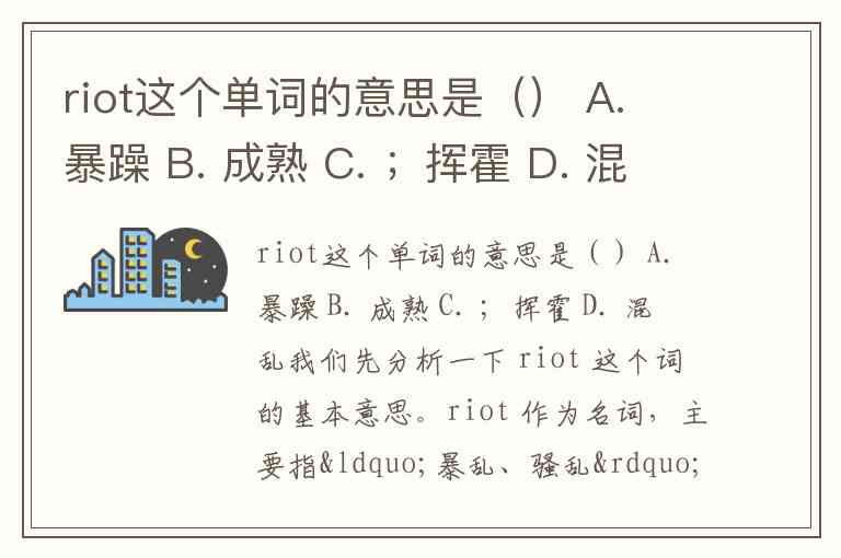 但结合常见考试题,“riot”最常被考的意思是“暴乱、骚乱”,也就是混乱。