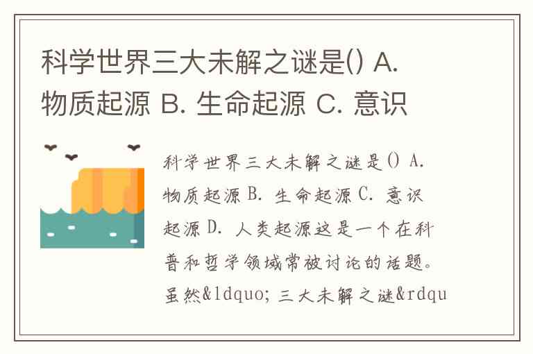 科学世界三大未解之谜是() A. 物质起源 B. 生命起源 C. 意识起源 D. 人类起源