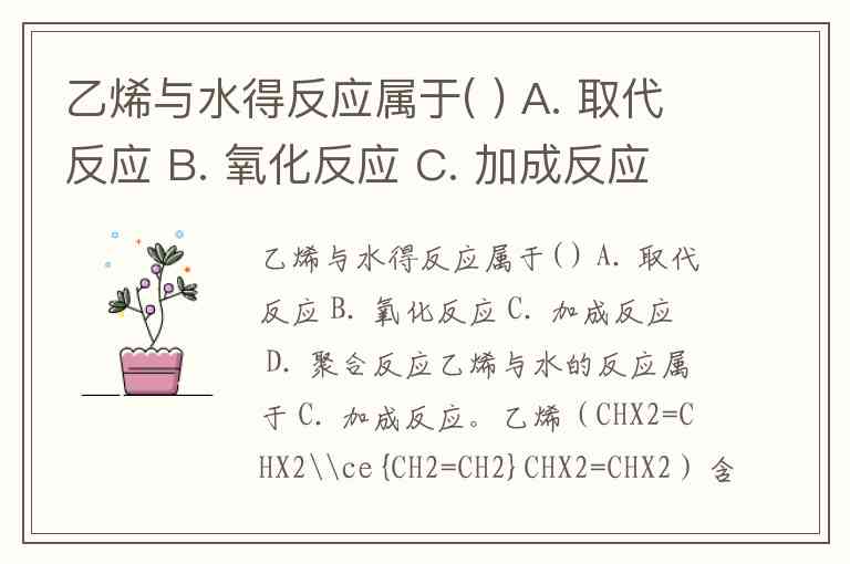 乙烯与水的反应属于 C. 加成反应。