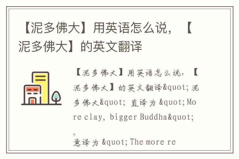 【泥多佛大】用英语怎么说,【泥多佛大】的英文翻译