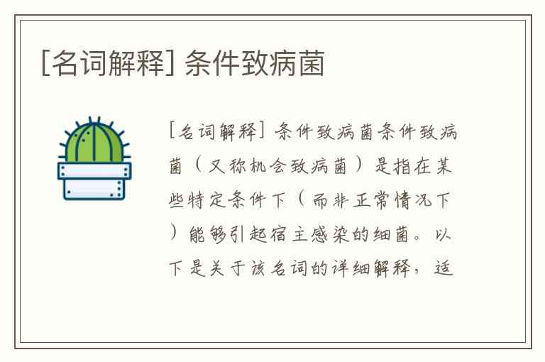 条件致病菌(又称机会致病菌)是指在某些特定条件下(而非正常情况下)能够引起宿主感染的细菌。