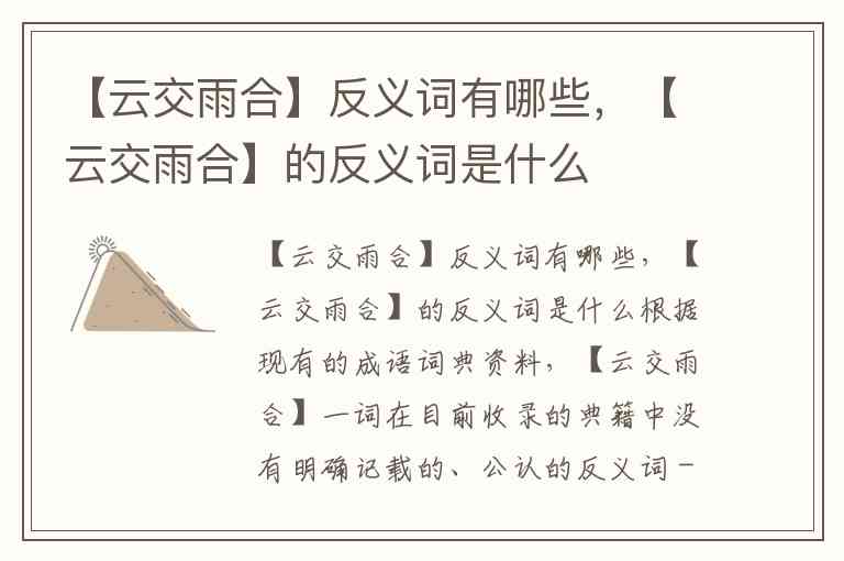 根据现有的成语词典资料,【云交雨合】一词在目前收录的典籍中没有明确记载的、公认的反义词 -1-3-4。