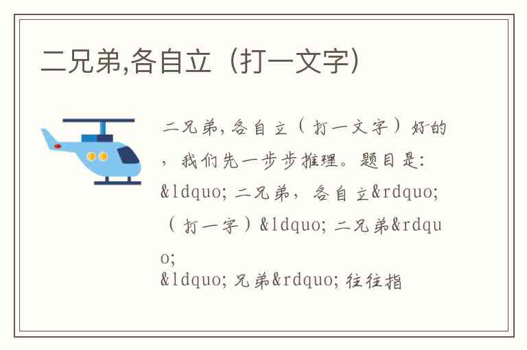如果“二兄弟,各自立”是指两个“兄”各有一个“立”——两个“兄”并列加“立”?这不是标准字。
