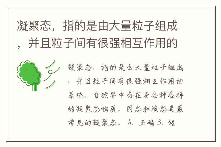 凝聚态是指由大量粒子组成,且粒子之间有很强的相互作用的系统。