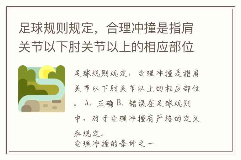 足球规则规定,合理冲撞是指肩关节以下肘关节以上的相应部位。 A. 正确 B. 错误