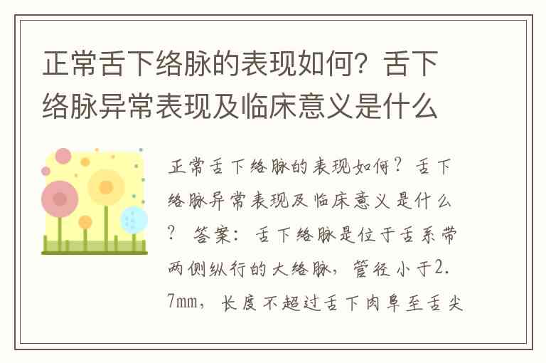 舌下络脉的正确表现、异常及其临床意义如下: