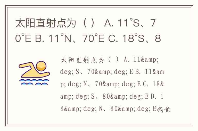 太阳直射点为( ) A. 11°S、70°E B. 11°N、70°E C. 18°S、80°E D. 18°N、80°E