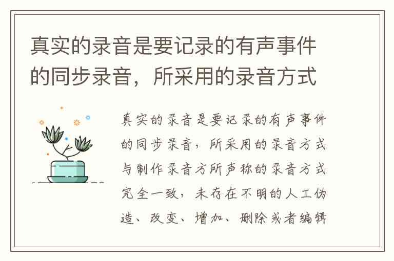 但是法律上或日常判断里,有时“真实录音”可以指“内容真实”(没有被篡改原意),不一定必须完全同步且没有后期任何编辑。题干过于绝对化地定义了“真实的录音”,所以它属于一种学理上或理想状态下的极端定义,不一定完全符合所有学科或司法对真实录音的认定。