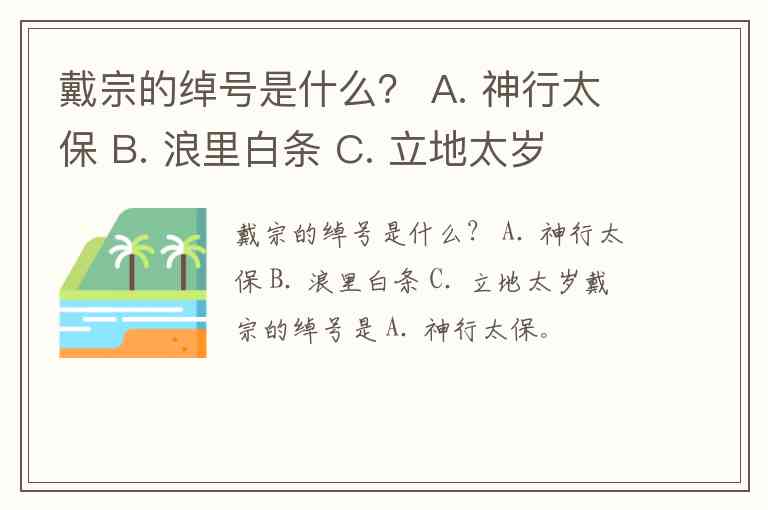 戴宗的绰号是什么? A. 神行太保 B. 浪里白条 C. 立地太岁