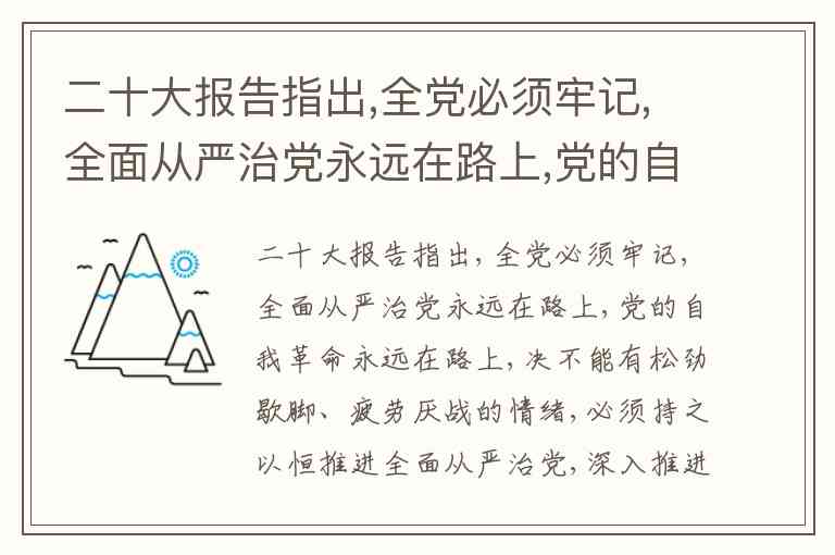 党的二十大报告明确指出,必须以党的自我革命引领社会革命。
