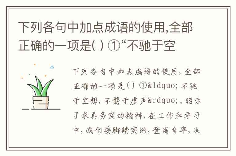 因此真正“全部正确”的应该是①③④⑤,但选项里没有这个组合,因此题目可能是让选一个“句子中加点成语全部正确的项”。