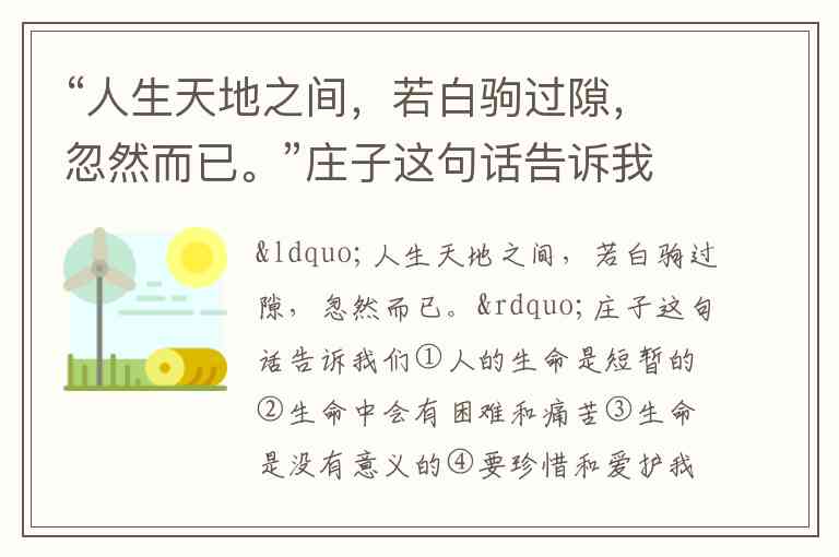 ④ 要珍惜和爱护我们的生命 —— 这句话虽然原文没有直接说“珍惜”,但从“若白驹之过隙”可以推出人生短暂,从而引发珍惜生命的态度,这在理解上是合理的引申。