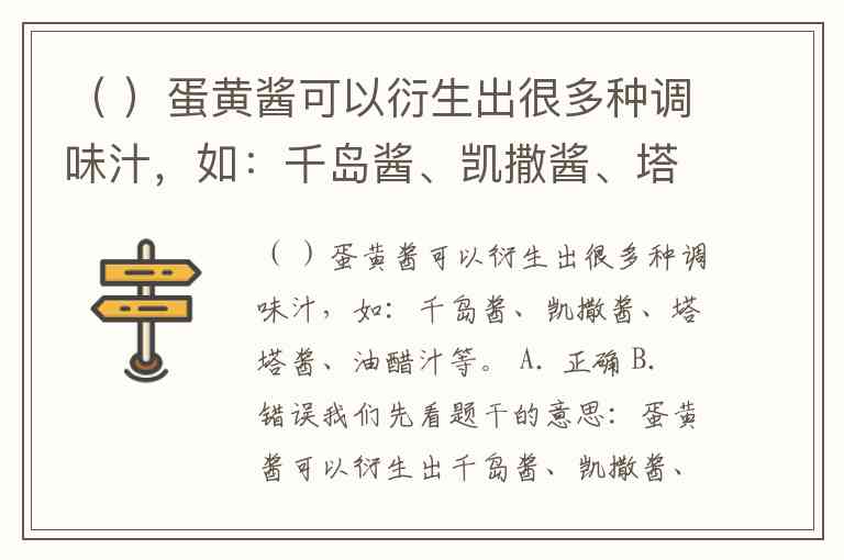 我们先看题干的意思:蛋黄酱可以衍生出千岛酱、凯撒酱、塔塔酱、油醋汁。