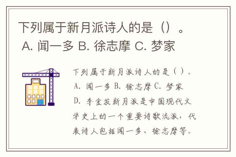 下列属于新月派诗人的是()。 A. 闻一多 B. 徐志摩 C. 梦家 D. 李金发