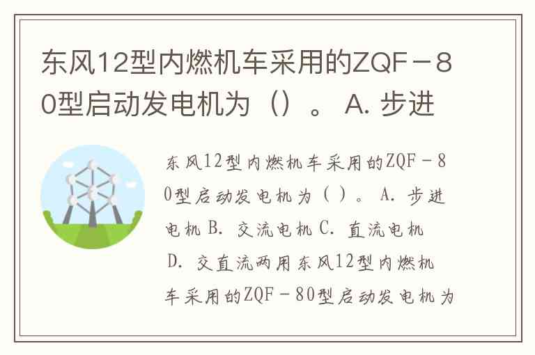 东风12型内燃机车采用的ZQF-80型启动发电机为()。 A. 步进电机 B. 交流电机 C. 直流电机 D. 交直流两用