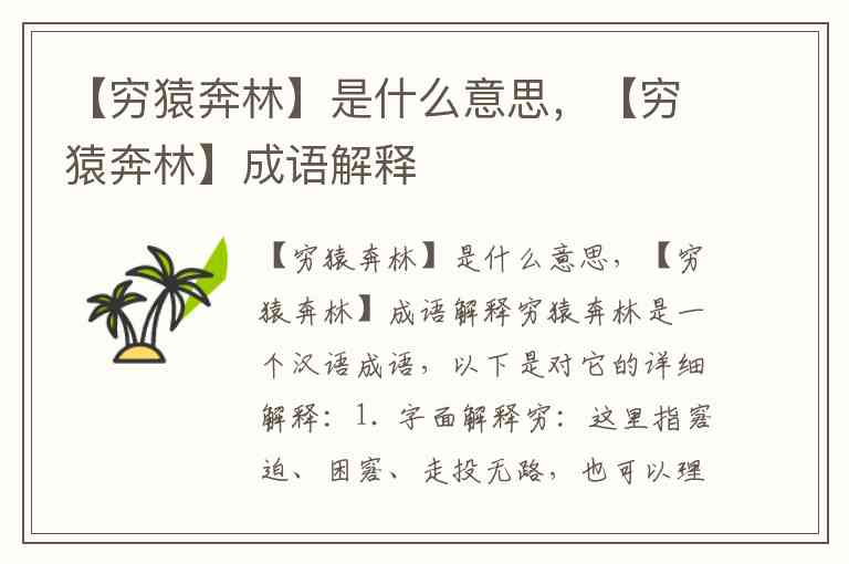 穷猿奔林是一个汉语成语,以下是对它的详细解释: