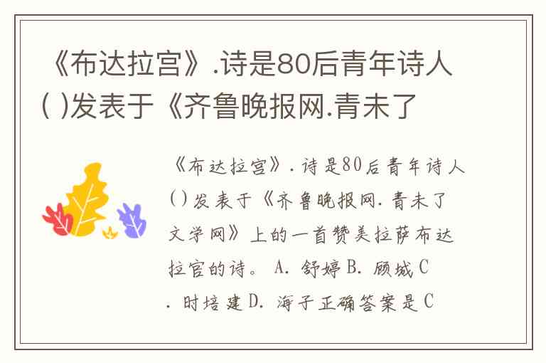 根据搜索结果中导游资格证的考试题库资料显示,《布达拉宫》一诗确实是80后青年诗人时培建发表于《齐鲁晚报网·青未了文学网》的作品-1-2-4。其他选项中: