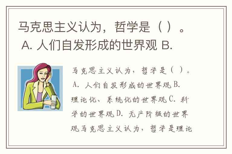 马克思主义认为,哲学是( )。 A. 人们自发形成的世界观 B. 理论化、系统化的世界观 C. 科学的世界观 D. 无产阶级的世界观