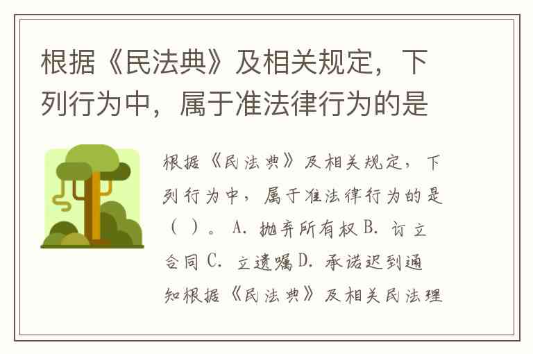 根据《民法典》及相关规定,下列行为中,属于准法律行为的是( )。 A. 抛弃所有权 B. 订立合同 C. 立遗嘱 D. 承诺迟到通知