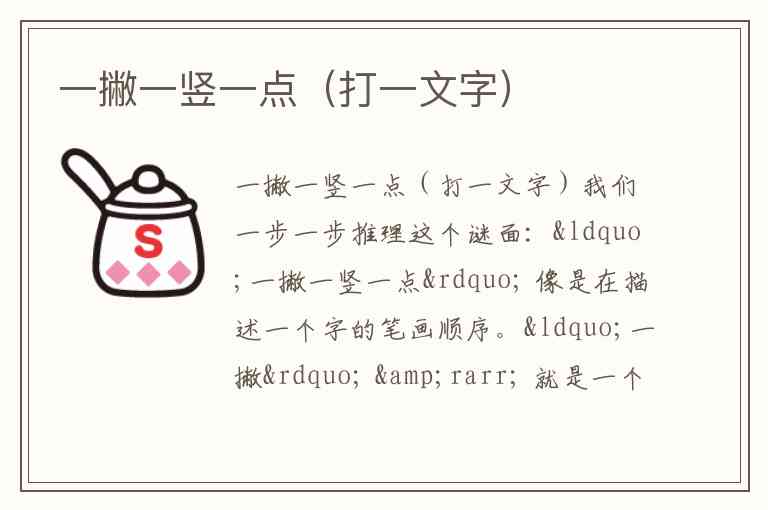 “一撇一竖一点” 像是在描述一个字的笔画顺序。
