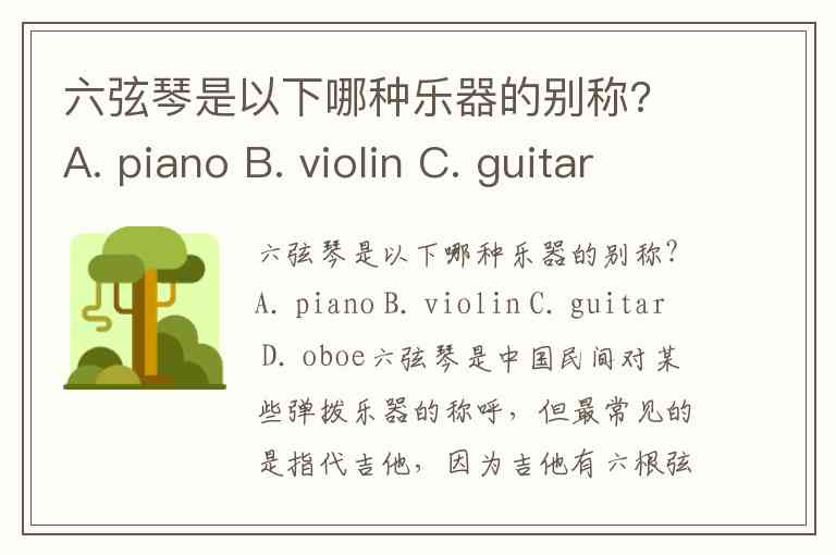 六弦琴是以下哪种乐器的别称? A. piano B. violin C. guitar D. oboe