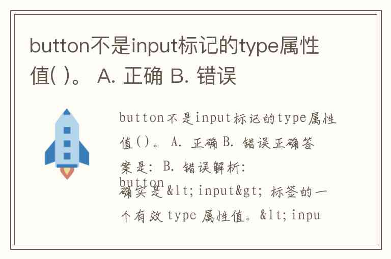 button不是input标记的type属性值( )。 A. 正确 B. 错误