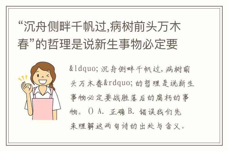 “沉舟侧畔千帆过,病树前头万木春”的哲理是说新生事物必定要战胜落后的腐朽的事物。() A. 正确 B. 错误