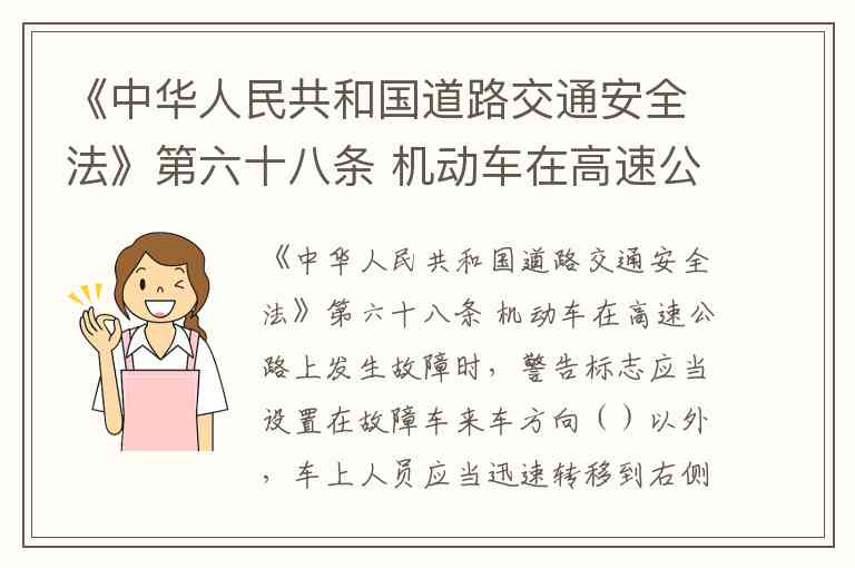 《中华人民共和国道路交通安全法》第六十八条 机动车在高速公路上发生故障时,警告标志应当设置在故障车来车方向()以外,车上人员应当迅速转移到右侧路肩上或者应急车道内,并且迅速报警。 A. 五十米 B. 一百米 C. 一百五十米 D. 二百米