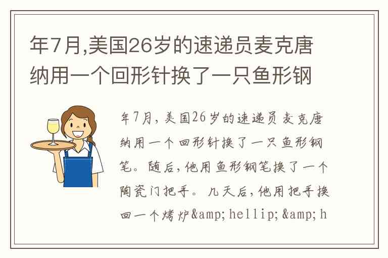 年7月,美国26岁的速递员麦克唐纳用一个回形针换了一只鱼形钢笔。随后,他用鱼形钢笔换了一个陶瓷门把手。几天后,他用把手换回一个烤炉……前前后后在网络上经过16次的交换,麦克唐纳最终换来了一栋两层别墅的一年居住权。这个交换过程①其实质是商品生产者之间的劳动交换 ②商品的使用价值通过另一种商品的使用价值得以实现③是不等价交换,没有遵循价值规律 ④有利于人们节约资源,做到绿色消费 A. ①② B. ②③ C. ①④ D. ③④