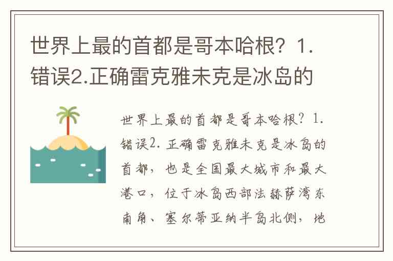 题目先问“世界上最的首都是哥本哈根?”,这句话很可能是想说“世界上最北的首都是哥本哈根?”如果这样,我们知道哥本哈根是丹麦首都,位于北纬 55° 左右,并不是最北。