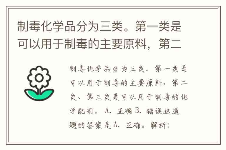 制毒化学品分为三类。第一类是可以用于制毒的主要原料,第二类、第三类是可以用于制毒的化学配剂。 A. 正确 B. 错误