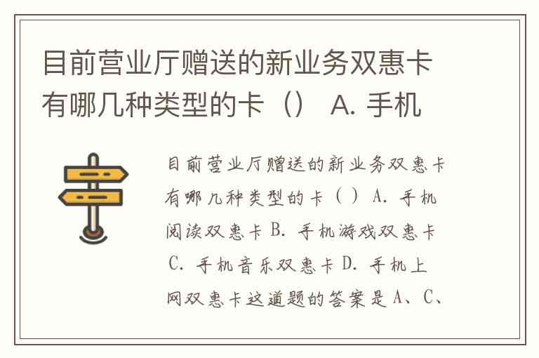目前营业厅赠送的新业务双惠卡有哪几种类型的卡() A. 手机阅读双惠卡 B. 手机游戏双惠卡 C. 手机音乐双惠卡 D. 手机上网双惠卡