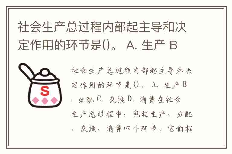 社会生产总过程内部起主导和决定作用的环节是()。 A. 生产 B. 分配 C. 交换 D. 消费