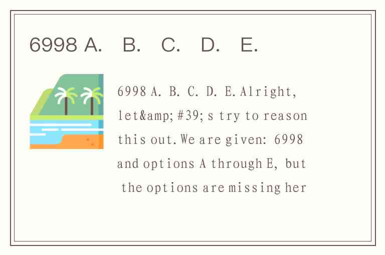 Sometimes 6998 could be the result of some operation like multiplication, addition, or concatenation. Or possibly it's part of a number sequence and we need to choose the next term from options A, B, C, D, E.