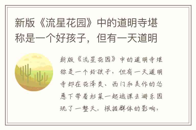 背景:道明寺本来是好孩子,但在花泽类、西门和美作的怂恿下,和杉菜一起逃课去游乐园玩。