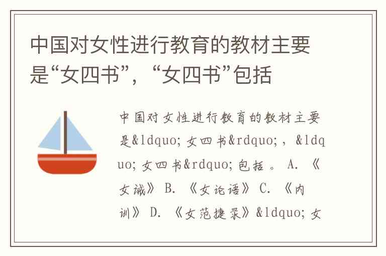 中国对女性进行教育的教材主要是“女四书”,“女四书”包括 。 A. 《女诫》 B. 《女论语》 C. 《内训》 D. 《女范捷录》