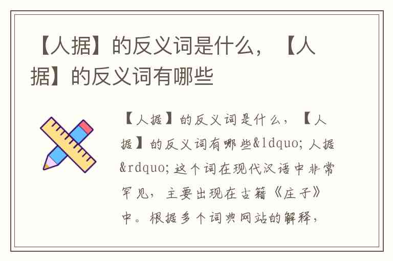 “人据”这个词在现代汉语中非常罕见,主要出现在古籍《庄子》中。根据多个词典网站的解释,“人据”目前没有明确、公认的反义词 -1-7-9。