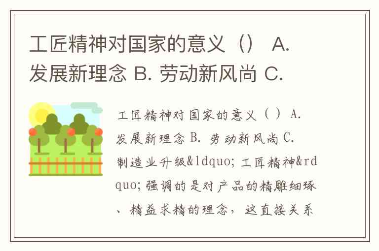 工匠精神对国家的意义() A. 发展新理念 B. 劳动新风尚 C. 制造业升级