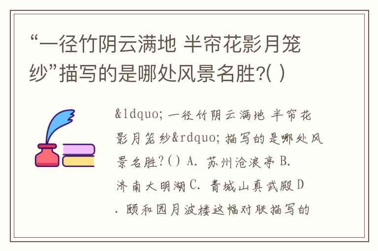 “一径竹阴云满地 半帘花影月笼纱”描写的是哪处风景名胜?( ) A. 苏州沧浪亭 B. 济南大明湖 C. 青城山真武殿 D. 颐和园月波楼