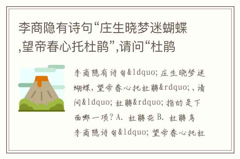 李商隐有诗句“庄生晓梦迷蝴蝶,望帝春心托杜鹃”,请问“杜鹃”指的是下面哪一项? A. 杜鹃花 B. 杜鹃鸟