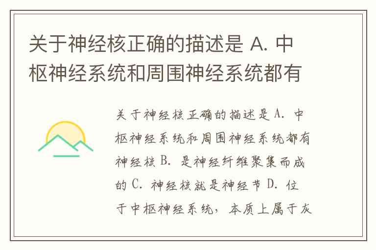 关于神经核正确的描述是 A. 中枢神经系统和周围神经系统都有神经核 B. 是神经纤维聚集而成的 C. 神经核就是神经节 D. 位于中枢神经系统,本质上属于灰质核团