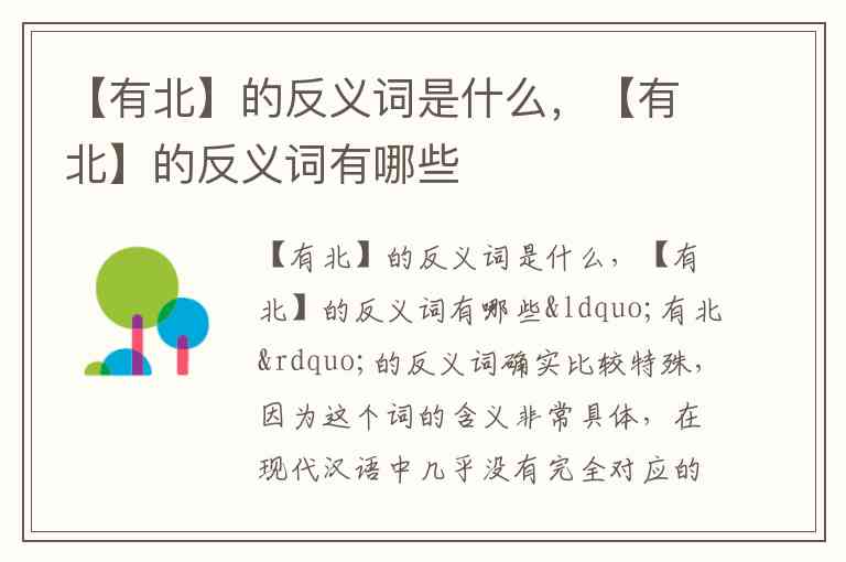 “有北”的反义词确实比较特殊,因为这个词的含义非常具体,在现代汉语中几乎没有完全对应的反义词。