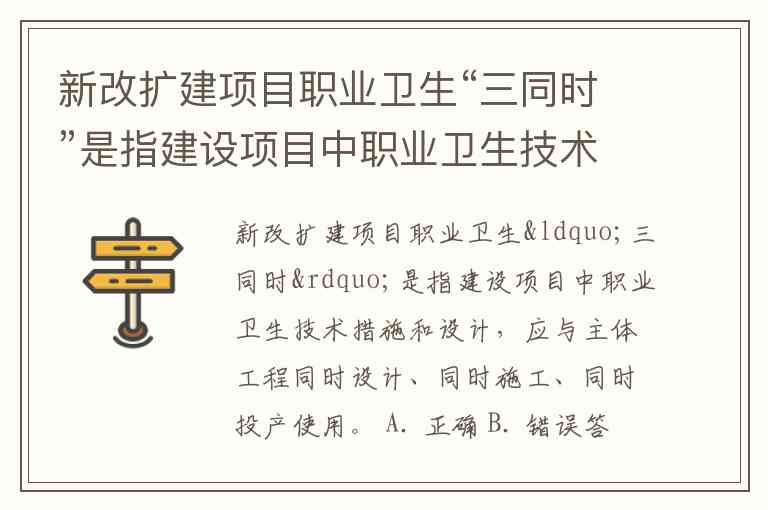 新改扩建项目职业卫生“三同时”是指建设项目中职业卫生技术措施和设计,应与主体工程同时设计、同时施工、同时投产使用。 A. 正确 B. 错误