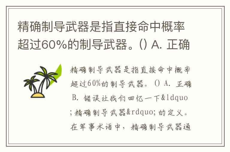 精确制导武器是指直接命中概率超过60%的制导武器。() A. 正确 B. 错误