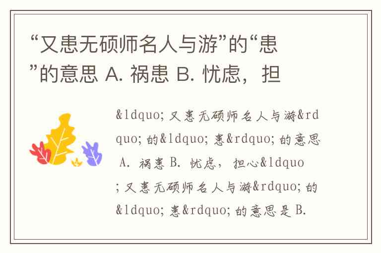“又患无硕师名人与游”的“患”的意思 A. 祸患 B. 忧虑,担心