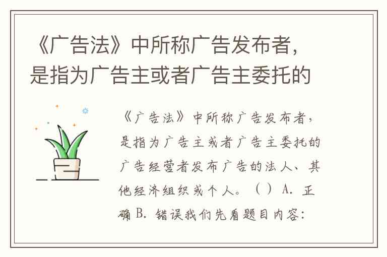 《广告法》中所称广告发布者,是指为广告主或者广告主委托的广告经营者发布广告的法人、其他经济组织或个人。() A. 正确 B. 错误