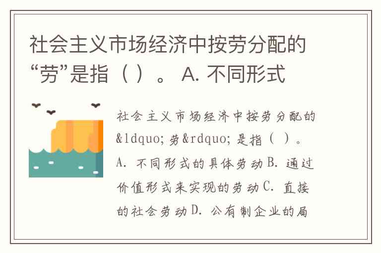 社会主义市场经济中按劳分配的“劳”是指( )。 A. 不同形式的具体劳动 B. 通过价值形式来实现的劳动 C. 直接的社会劳动 D. 公有制企业的局部劳动 E. 劳动者实际支出的劳动